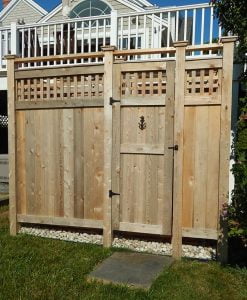 New to the line of Cape Cod Shower Kits, this PVC freestanding outdoor shower kit is sure to look great in any backyard. Made with durable PVC panels that withstand the elements, this shower kit option is low maintenance and easy to clean.