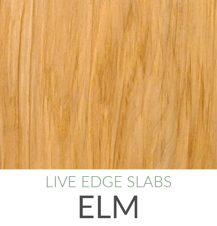 Elm live edge slabs are known for their unique, wavy grain patterns and a rich, warm color palette that ranges from light tan to deep reddish-brown, often with striking variations.