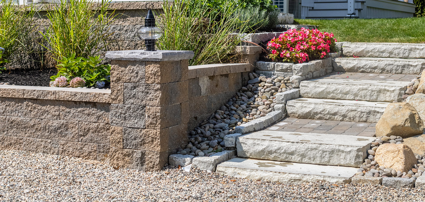 Create outdoor spaces using retaining walls. Select from a huge selection of stone walls for retaining applications, accents and more.