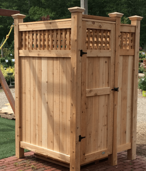 If you’d like to have the cedar lattice option for your outdoor shower, we now offer that option! Each panel (including the door) will be crafted with the highest quality great smelling cedar lattice and solid framing to give you the classic look you want.
